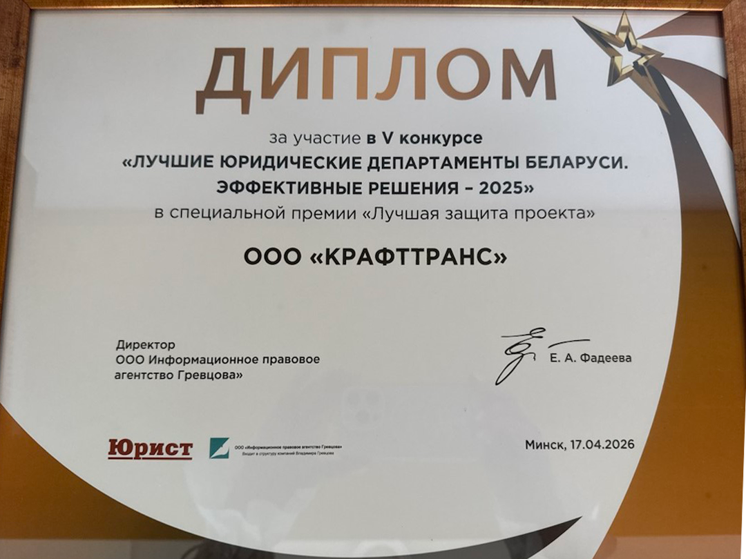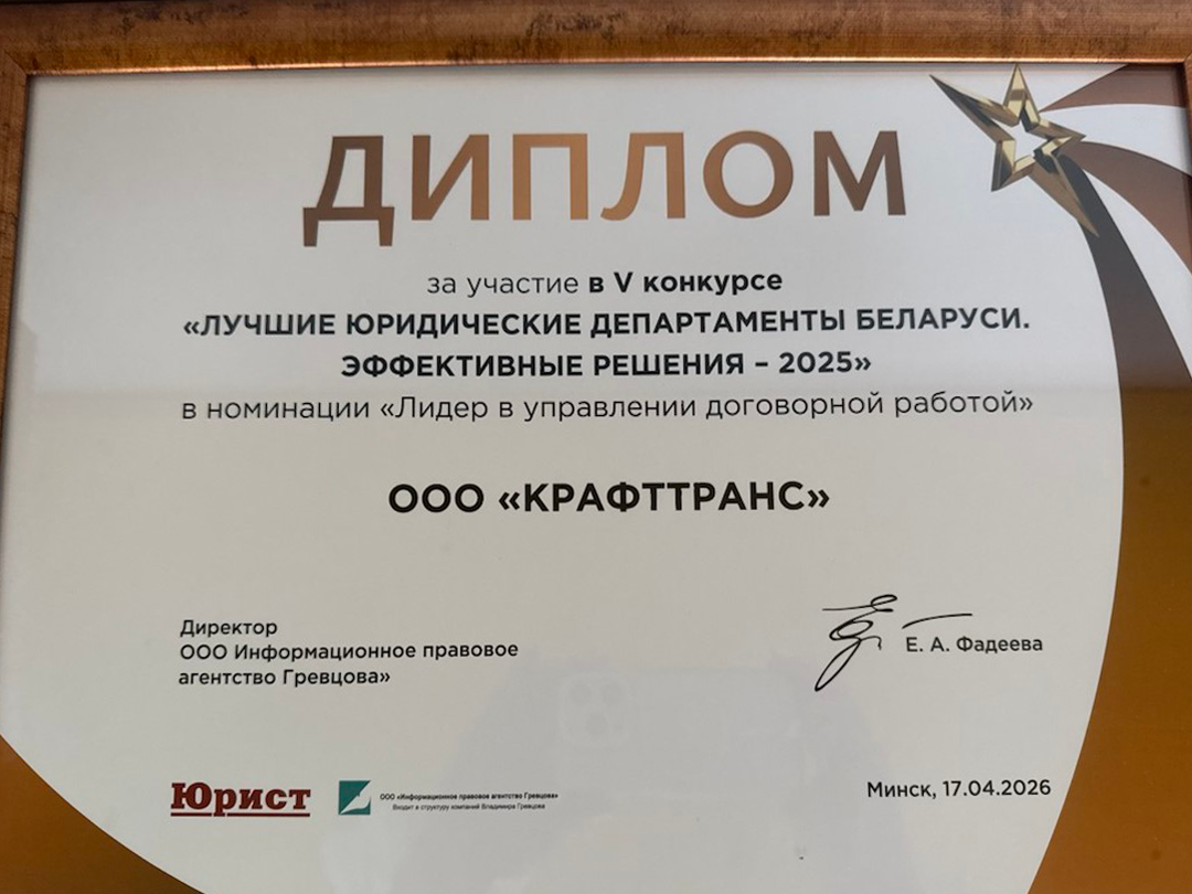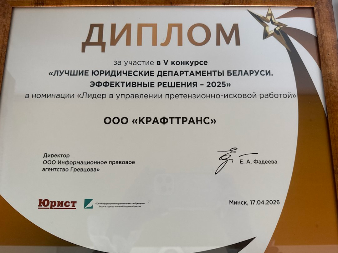 Это признание – заслуженная оценка профессионального подхода, системной работы и высокого уровня юридической экспертизы в «КРАФТТРАНС».